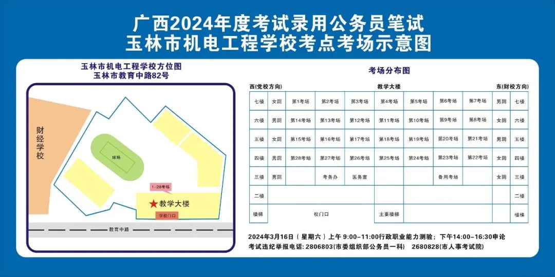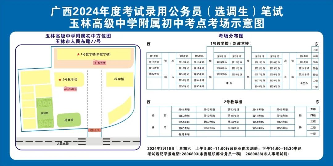 2024年選擇在玉林考區(qū)參加考試的考生人數(shù)較多,屆時(shí)考點(diǎn)區(qū)域內(nèi)的食宿、交通較為緊張。請(qǐng)?zhí)崆傲私獗救怂诳键c(diǎn)具體位置,熟悉考點(diǎn)周邊情況,根據(jù)考點(diǎn)的情況合理做好食宿安排和出行計(jì)劃。需要特別注意的是:玉林市第一職業(yè)中等專業(yè)學(xué)??键c(diǎn)是設(shè)在該校的東校區(qū)(人民東路東235號(hào));玉林市第一中學(xué)考點(diǎn)是設(shè)在該校的運(yùn)嶺路校區(qū)(二環(huán)北路1228號(hào))!