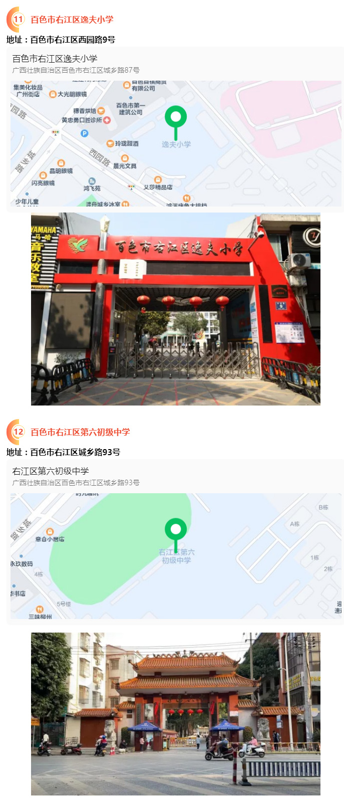 2.請?zhí)崆笆煜た键c地址,做好路線、住宿的安排。本次考試參考人數(shù)較多,考點分布分散,建議考生考前實地察看考點,確認考點入口位置,防止走錯考點。請充分考慮考點周邊交通通行情況和停車場地容量,合理安排出行方式,預留充足時間,確保考試當天按時到達。另外,考試期間百色市及各考點學校周邊的住宿比較緊張,請?zhí)崆邦A定。