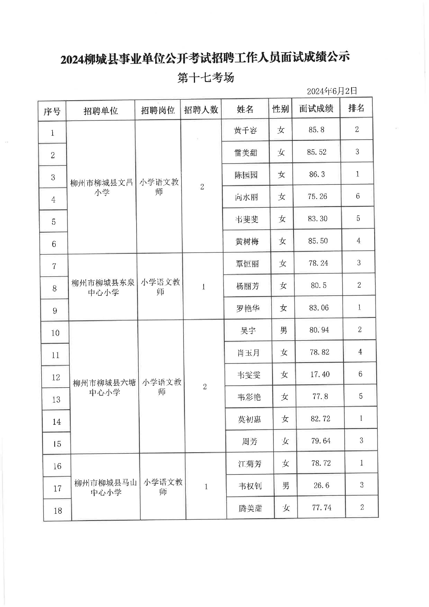 原文標(biāo)題:2024年柳州市事業(yè)單位公開考試招聘工作人員面試成績公示(柳城縣崗位)