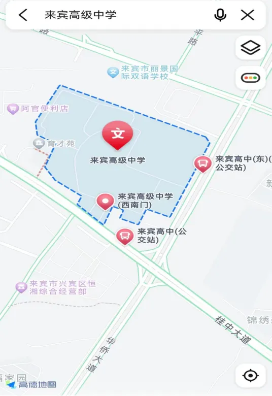 ▲來賓高級中學交通指引圖(來賓市興賓區(qū)桂中大道588號)。