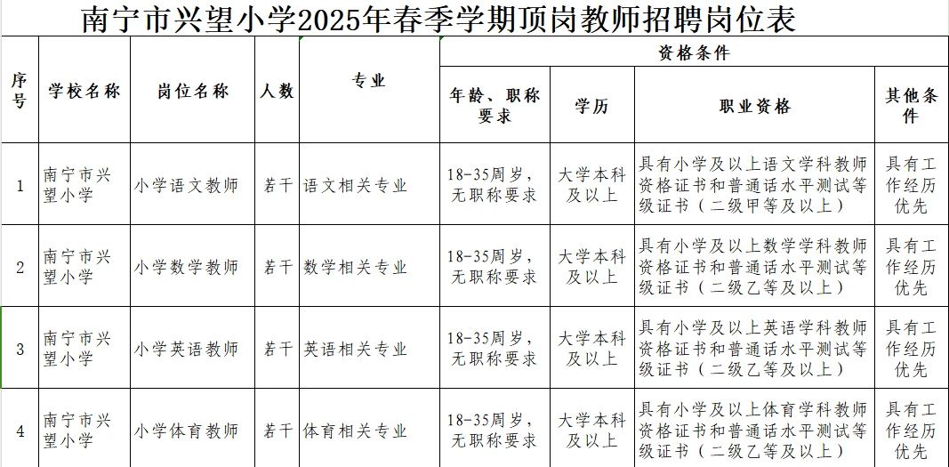 原文標(biāo)題:【教師招聘】真雅興望 歡迎你的到來(lái) ——南寧市興望小學(xué)2025年春季學(xué)期頂崗教師招聘公告