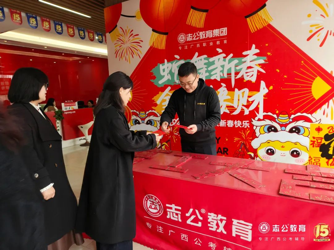 春節(jié)的喜慶氣氛猶在,而我們的心中早已裝滿了對未來的憧憬和期待。在未來的日子里,志公教育集團(tuán)將一如既往地秉承12條企業(yè)核心價值觀,為廣西公職教育提供良好的產(chǎn)品和服務(wù),實(shí)現(xiàn)企業(yè)使命——幫助人才實(shí)現(xiàn)更高質(zhì)量的就業(yè),為員工創(chuàng)造最具幸福感的企業(yè),用教育成就夢想!相信在全體員工的共同努力下,志公教育一定能夠開創(chuàng)更加輝煌的未來yes