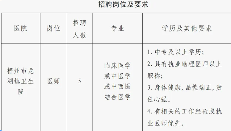 原文標(biāo)題:2025年梧州市龍湖鎮(zhèn)衛(wèi)生院招聘醫(yī)生5名