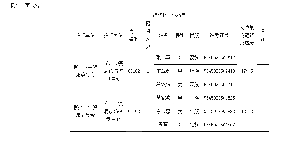 附件:《2025年柳州市衛(wèi)生健康委員會(huì)下屬事業(yè)單位公開招聘工作人員面試人員名單》