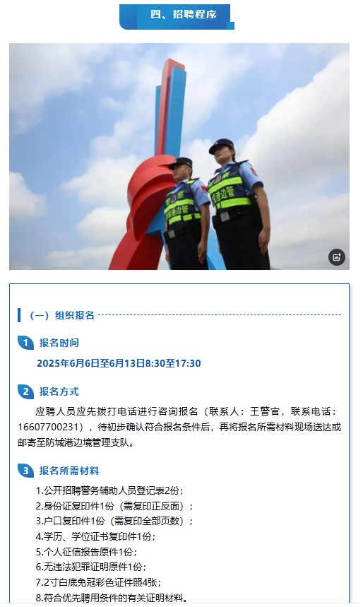 原文標題:防城港邊境管理支隊公開招聘警務(wù)輔助人員公告