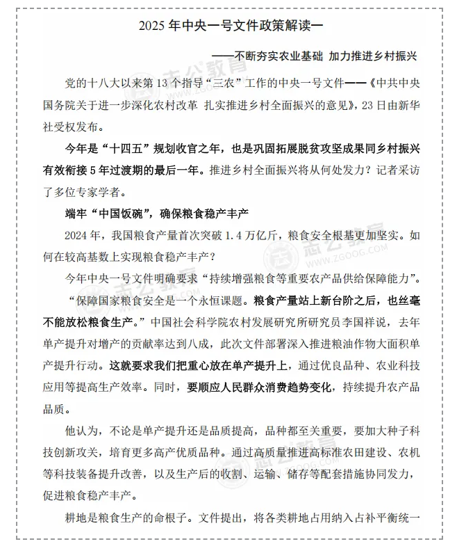 原文標題:廣西三支一扶必考考點!2025年中央一號文件.pdf免費領取
