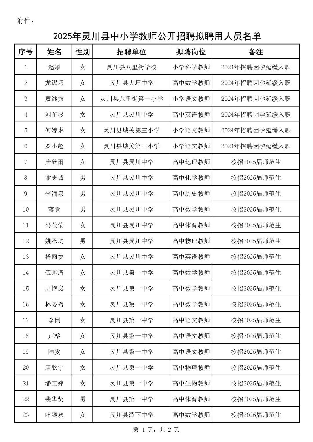 原文標(biāo)題:2025年靈川縣中小學(xué)教師公開招聘擬聘用人員名單公示