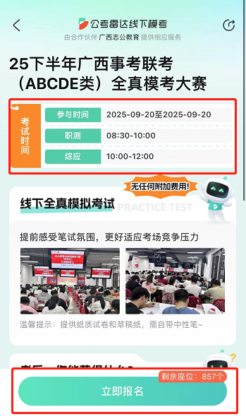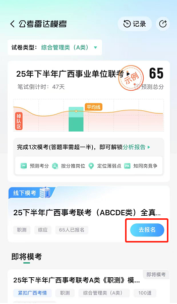 1??全zhen模擬高度還原:嚴(yán)格按照廣西事業(yè)單位聯(lián)考流程和時(shí)間進(jìn)行,試卷對標(biāo)zhen題,考場安排也高度還原,給你沉浸式考試體驗(yàn)。