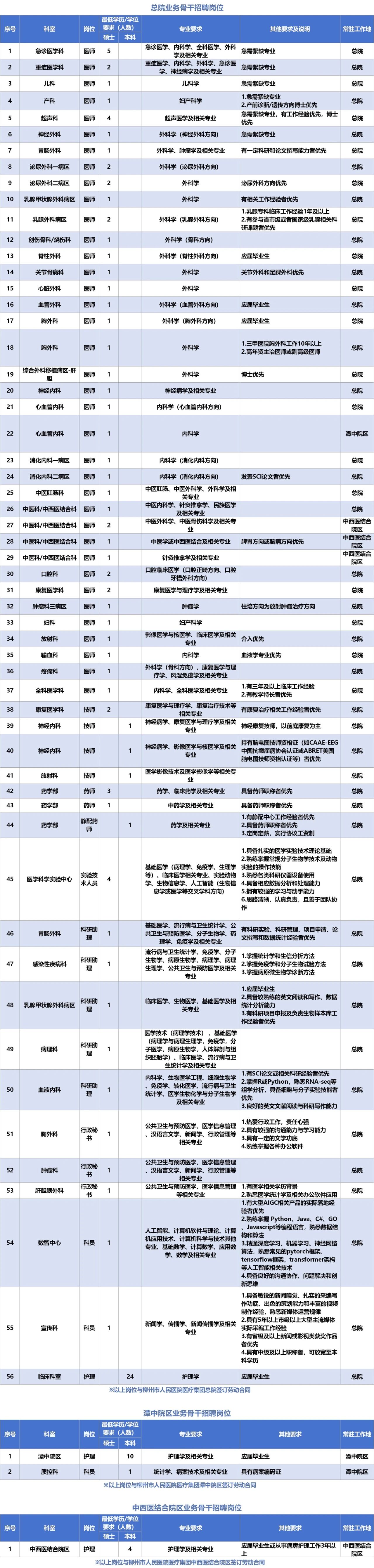 到集團(tuán)潭中院區(qū)及中西醫(yī)結(jié)合院區(qū)工作的碩士及以上研究生醫(yī)師崗位人員,可優(yōu)先按程序享受集團(tuán)院區(qū)事業(yè)編制。