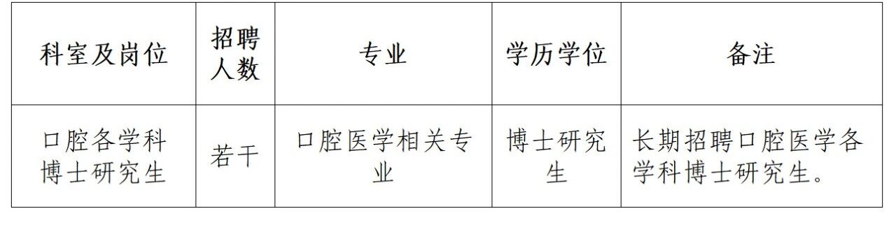 人才條件:35歲以下,口腔醫(yī)學相關專業(yè)研究生畢業(yè),獲碩士學位。