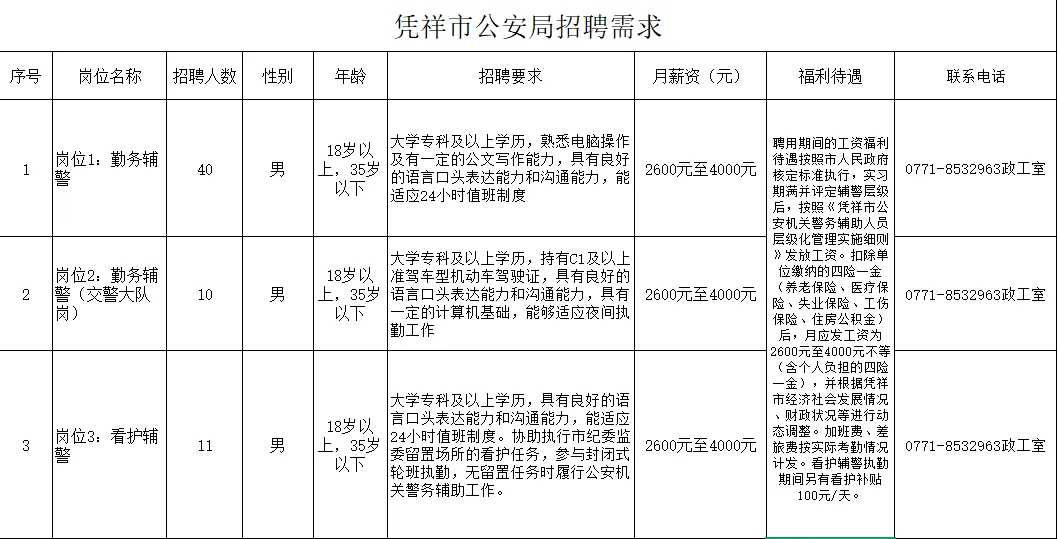 通過資格審查的人員,憑祥市公安局將統(tǒng)一進(jìn)行筆試、體能測試及面試。